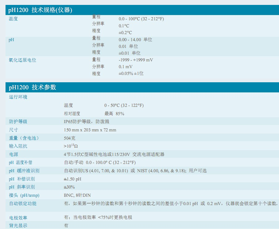 pH、氧化还原电位、温度。pH1200可提供以YSI品质的pH或氧化还原电位的实验室测量。图为仪器和170电很座。